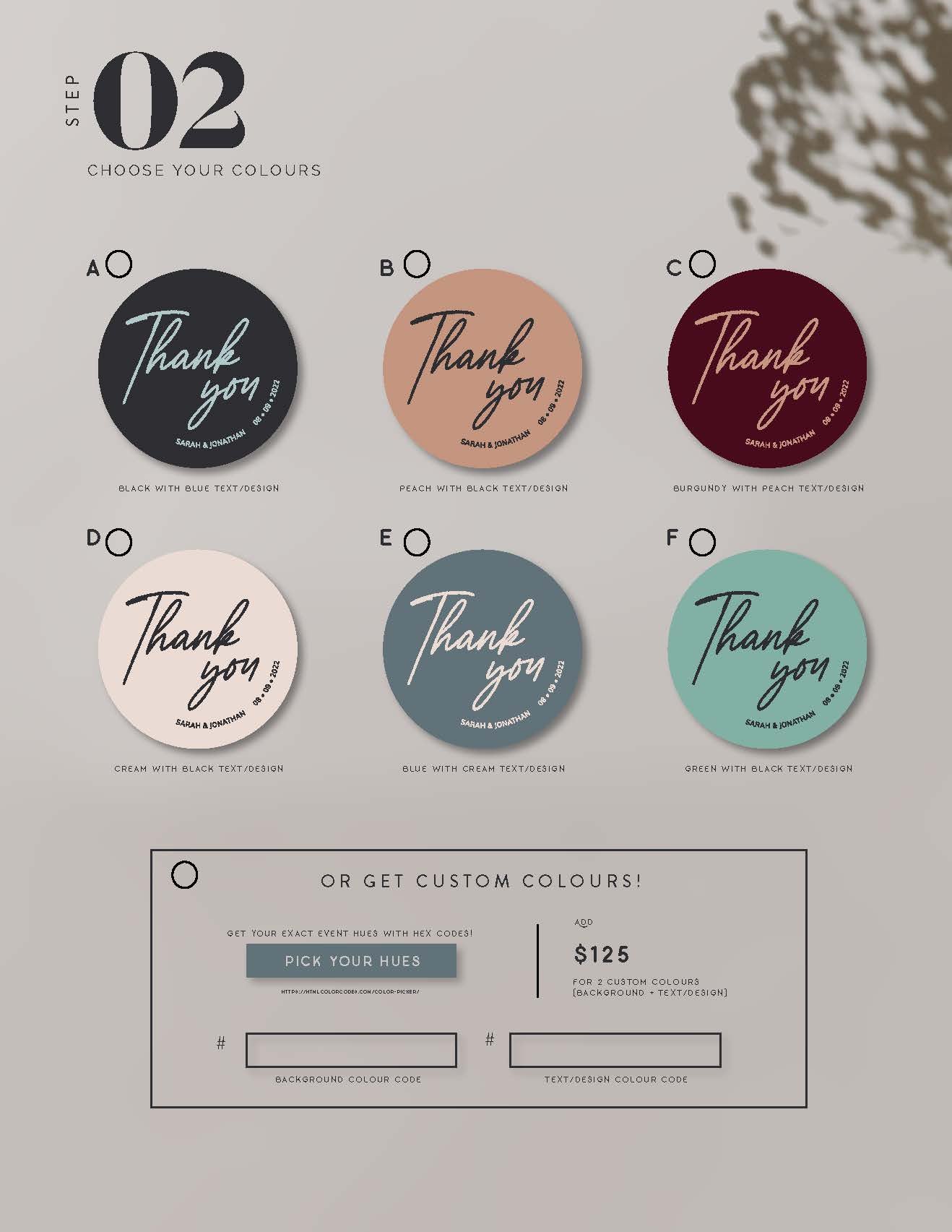 Or, if you have an exact hue or two you'd like, we've got you covered with the option to send over your preferred hex codes.